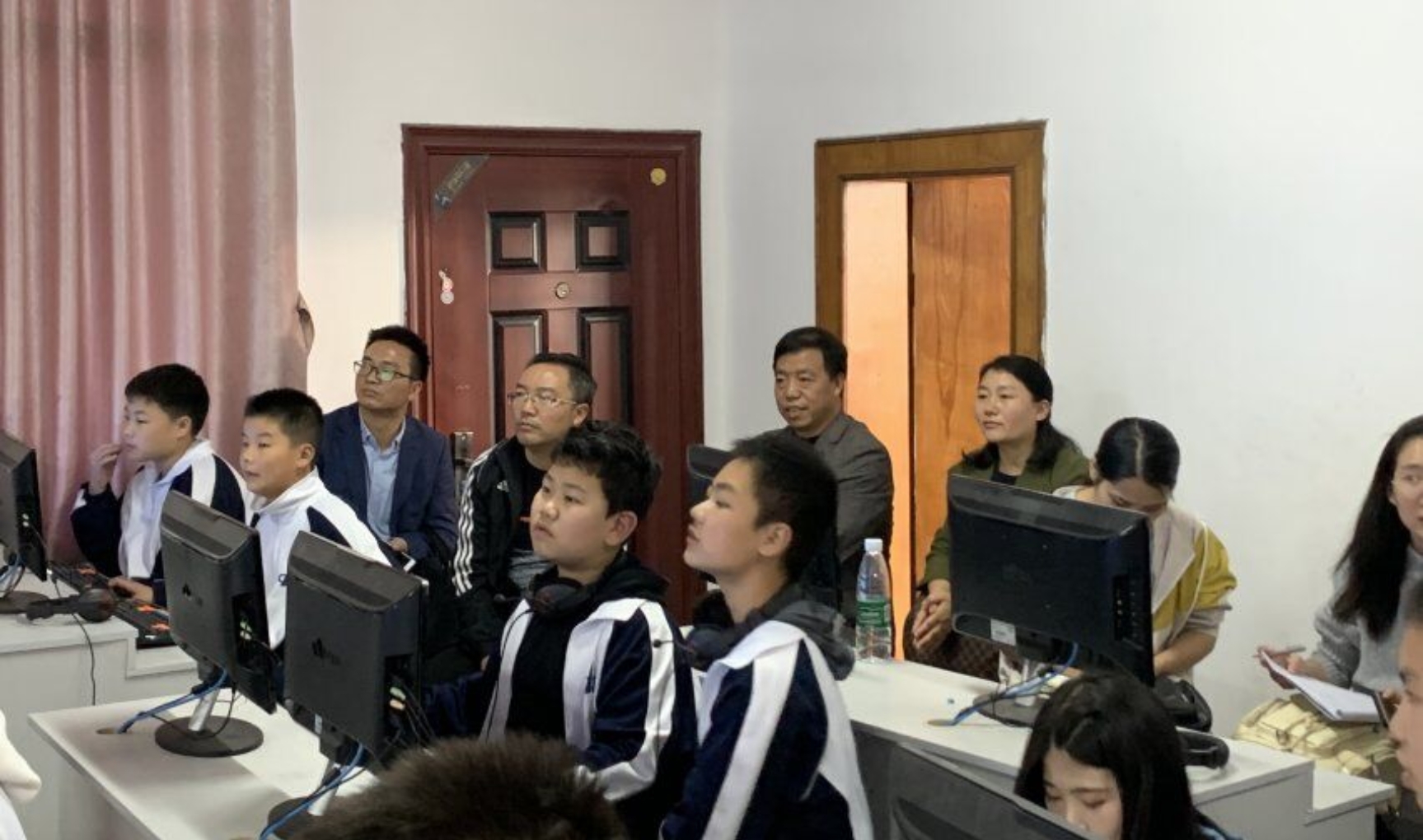 最后,院领导、指导老师和实习生移步到电脑教室,观摩了实习生龚义卿的课堂教学。