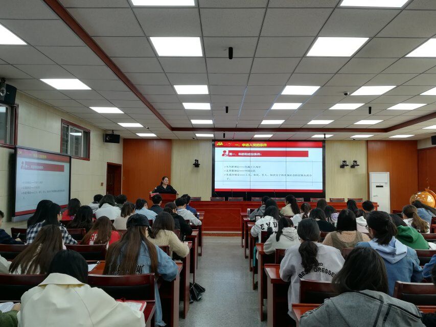 刘副部长联系大学生实际生活,围绕申请入党条件、共产党员的基本条件、共产党员的具体条件和对照标准、创造条件,争取早日加入中国共产党四方面开展专题培训,她提出要提高思想政治觉悟,不能只停留对党的纲领和章程认知层面,更要认同践行党的纲领和章程,培养党性,积极向党组织靠拢。同时,她还结合具体事例讲述了共产党员的八项义务和权利,要努力做贡献,全心全意为人民服务。此外,她号召大学生在政治思想方面、学习方面、工作方面、日常表现方面和群众基础方面严格要求自己,做好带头作用,从群众中来到群众中去,避免“唯学习论”、“唯社会工作论”和“求全责备”论三个问题,争取以实际行动早日入党。学员们聚精会神地倾听,认真做好笔记,学习氛围浓厚。讲座结束后,学员们致以热烈的掌声。