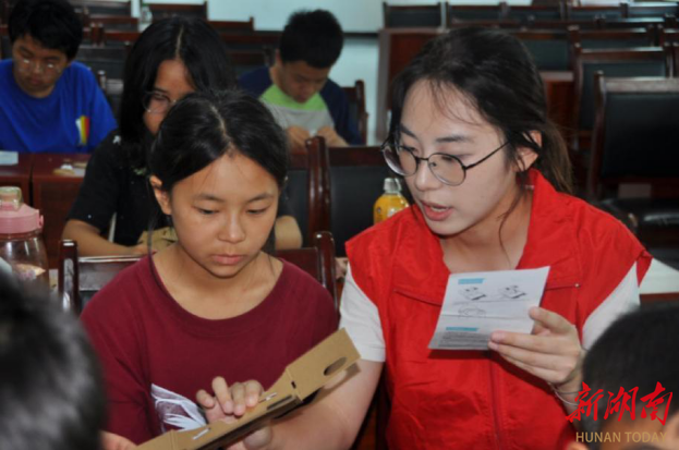 为助力乡村科学教育,激发孩子们对前沿科技的兴趣,7月15日,湖南科技大学木槿支教团在浏阳市枨冲镇新南桥村“FUN学营”为当地学生带来了一堂别出心裁的“魔法光学——揭秘VR技术”科普课程。