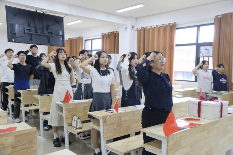 支部副书记邹宇欣带领全体党员重温入党誓词,代表支委会作工作总结。她认为,在过去的一年里,支委会尽职尽责,交出了一份满意的答卷。同时对下一届支委会提出了要求,创新适合支部工作方式,打造更高水平的党支部。支委会成员为毕业生党员分发政治生日贺卡,并为2024年新发展党员颁发党徽、党员证,希望他们发挥共产党员的先锋模范作用。党员同志们在知识竞答中掌握理论,在你画我猜游戏中增进友谊。