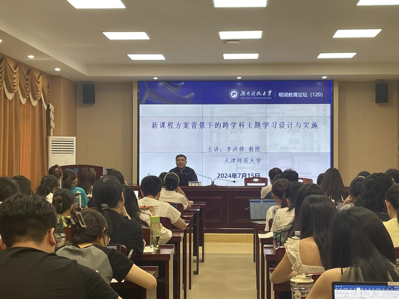 7月15日下午,国家“万人计划”青年拔尖人才、天津市高校学科领军人物、天津师范大学教育学部博士生导师李洪修教授做客“明湖论坛”,在敏行楼A333为我院师生带来“新课程方案背景下的跨学科主题学习设计与实施”的学术报告。学院青年教师代表、研究生代表参加。讲座由夏永庚教授主持。