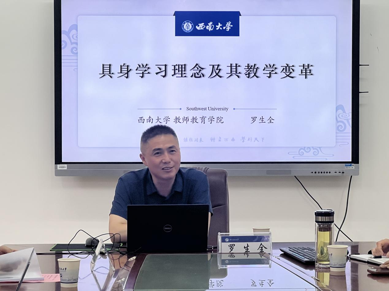 6月28日上午,教育部“青年长江学者”、西南大学教师教育学院院长罗全生教授来校讲学,以“具身学习理念及其教学变革”为题为教育学院师生作学术报告。讲座由我校教学评建与教师发展中心主任周险峰教授主持,教育学院青年教师代表、研究生代表到场聆听。