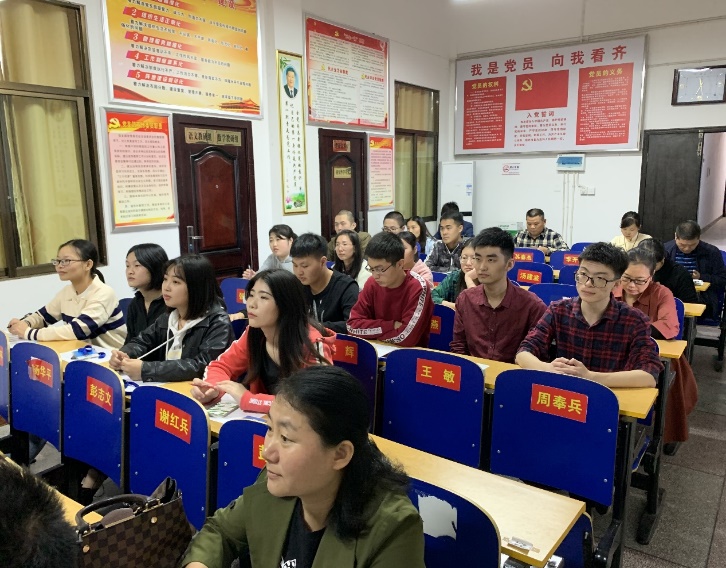 实习老师在认真聆听朱书记讲话