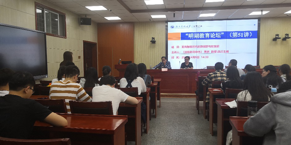 2019年4月8日下午,《远程教育杂志》执行主编陶侃编审做客“明湖教育论坛”,为我院师生带来主题为“面向智能时代的新视野与软技能”的学术报告。报告会由教育学院院长李海萍和教育技术学专业带头人王伟清主持。