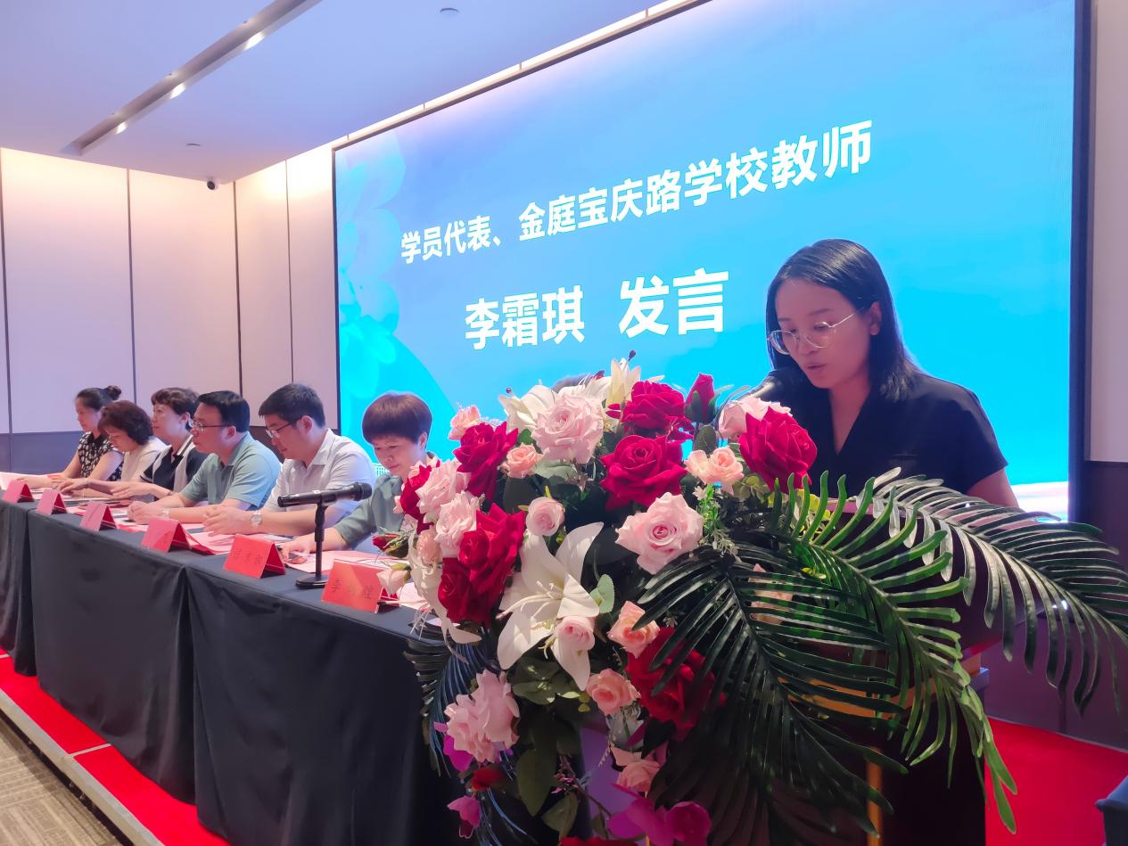 金庭宝庆路学校李霜琪老师作为研修教师代表发言。她表示将珍惜研修机会,严格遵守培训纪律,认真学习研修内容,圆满完成研修任务,不断提高劳动教育教学教研水平。