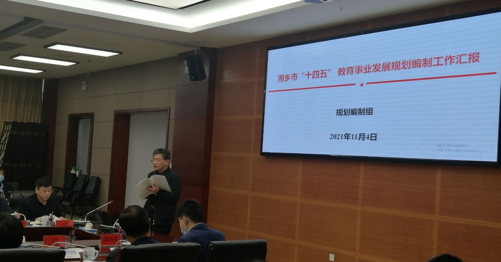 2021年11月4日下午,湘乡市召开教育强市调研工作会,教育学院党委书记李炳煌教授、张伟平博士参加。会议由湘乡市委书记赵新文主持。会上,李炳煌教授代表《湘乡市“十四五”教育事业发展规划》编制组向大会作《湘乡市“十四五”教育事业发展规划》编制工作汇报。