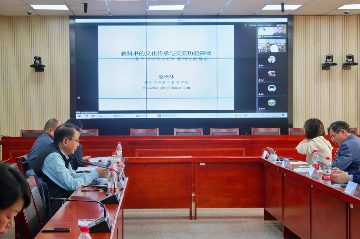 德州学院赵长林教授作了题为“教科书的文化传承与交流功能探微——基于《物理小识》影响力的启示”的报告。他的报告主要围绕作为文化本体、载体的教科书和作为文化传承创新与跨文化交流工具的教科书两方面展开。他认为,教科书本身是一种物质化的产品,本身作为物质文化样态会被传承与跨文化交流。《物理小识》的文化传播不仅在科技知识,更在思想方法和哲学理念。他提出,教科书事业应增强国际理解教育功能,践行人类命运共同体理念,传播中华文明和全人类共同价值观,展示中国教育科技事业成就,讲好中国人的道德伦理、精神世界、生活方式故事。