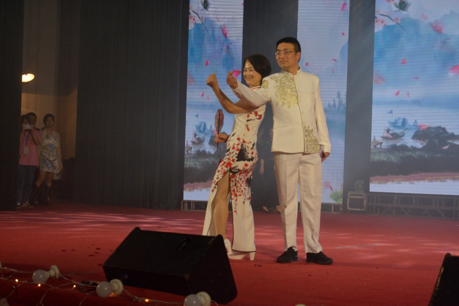 值得一提的是,教育学院的老师们也站上了晚会的舞台,他们身着西装旗袍,迈着自信稳健的步伐,向我们展现了属于教院老师的形象气质。他们的出场将晚会的气氛引向了高潮。